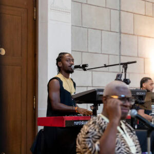 The Dr. AZA Trio, consisting of Dr. AZA Allsop (vocals/piano/keys), Zwelakhe-Duma Bell Le Pere (bass), and Ryan Sands (drums), are world-class artists and educators whose collective expertise spans continents, institutions, and musical genres. Their dynamic interactive performance will deliver a powerful, spiritually and emotionally resonant experience aligned with the mission of Music for the Collective.